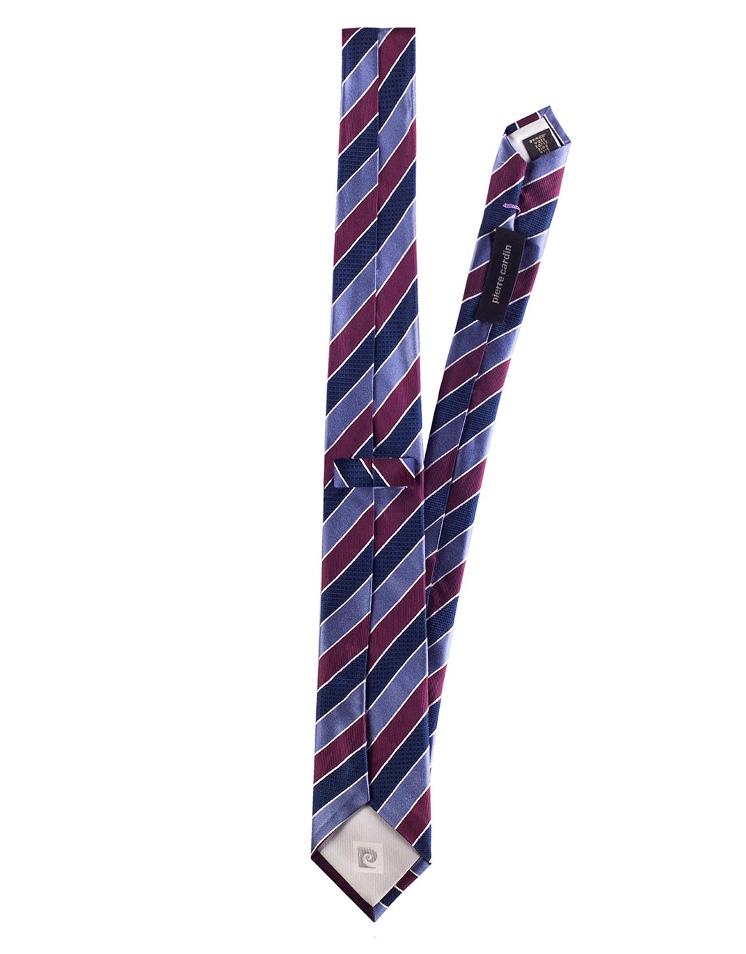- Краватка Pierre Cardin представлена в синьому-блакитному відтінку в смужку.
