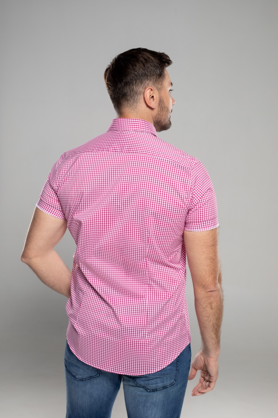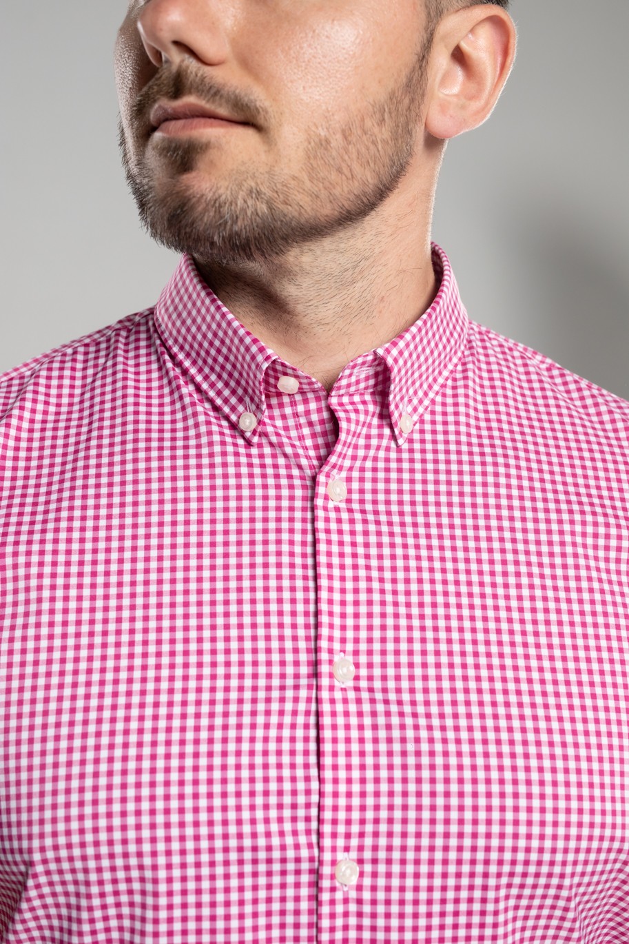 - Колір: рожевий, в дрібну білу клітку