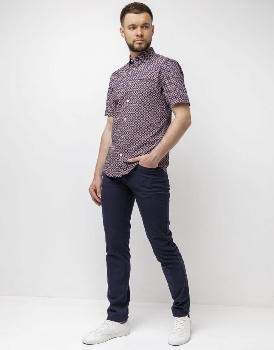 Сорочка Pierre Cardin з колекції Denim Story у бордовому кольорі з візерунком