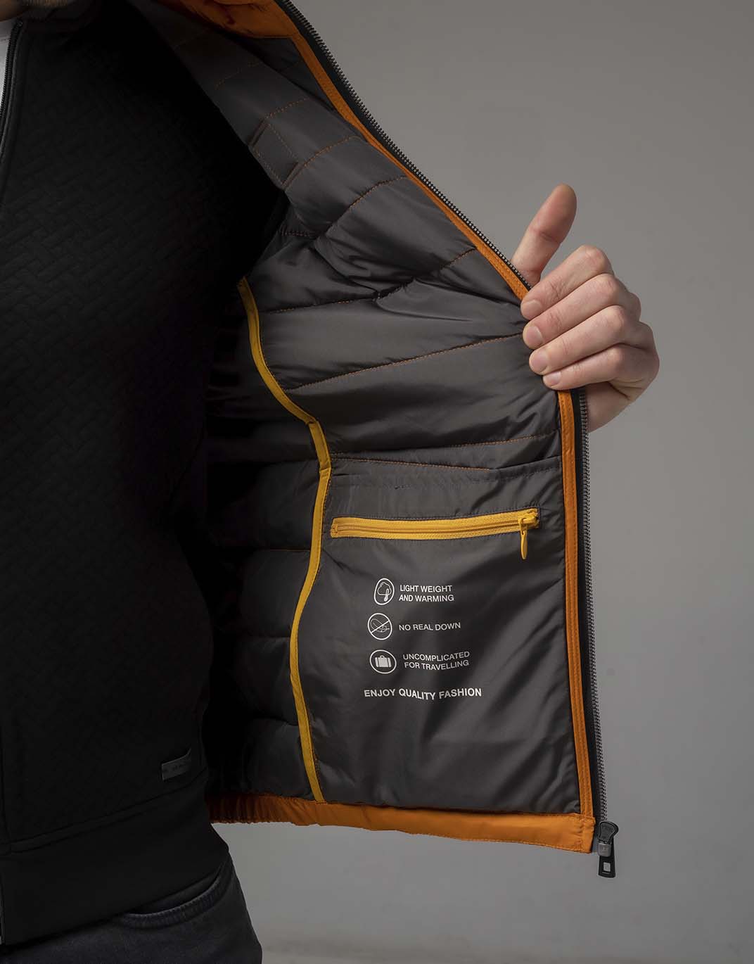 - Жилет досить легкий, компактний і функціональний, його можна вдало поєднувати з різними джемперами, гольфами або світшотами