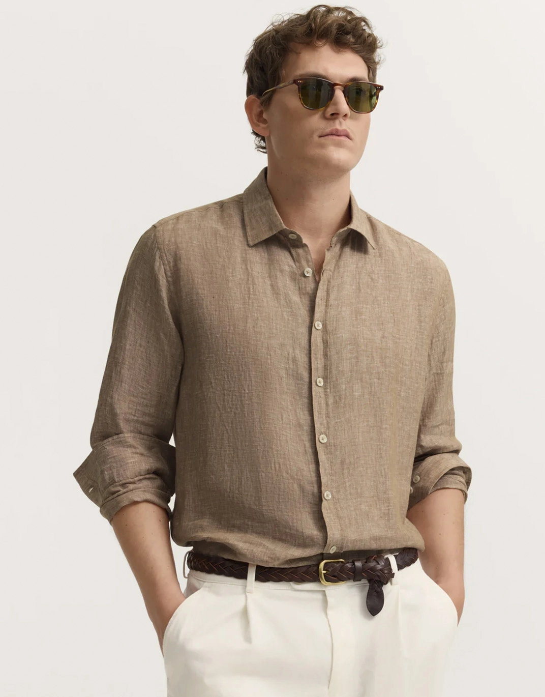 Эта мужская повседневная рубашка с длинными рукавами изготовлена из натуральной ткани, обеспечивающей максимальный комфорт в тёплые дни