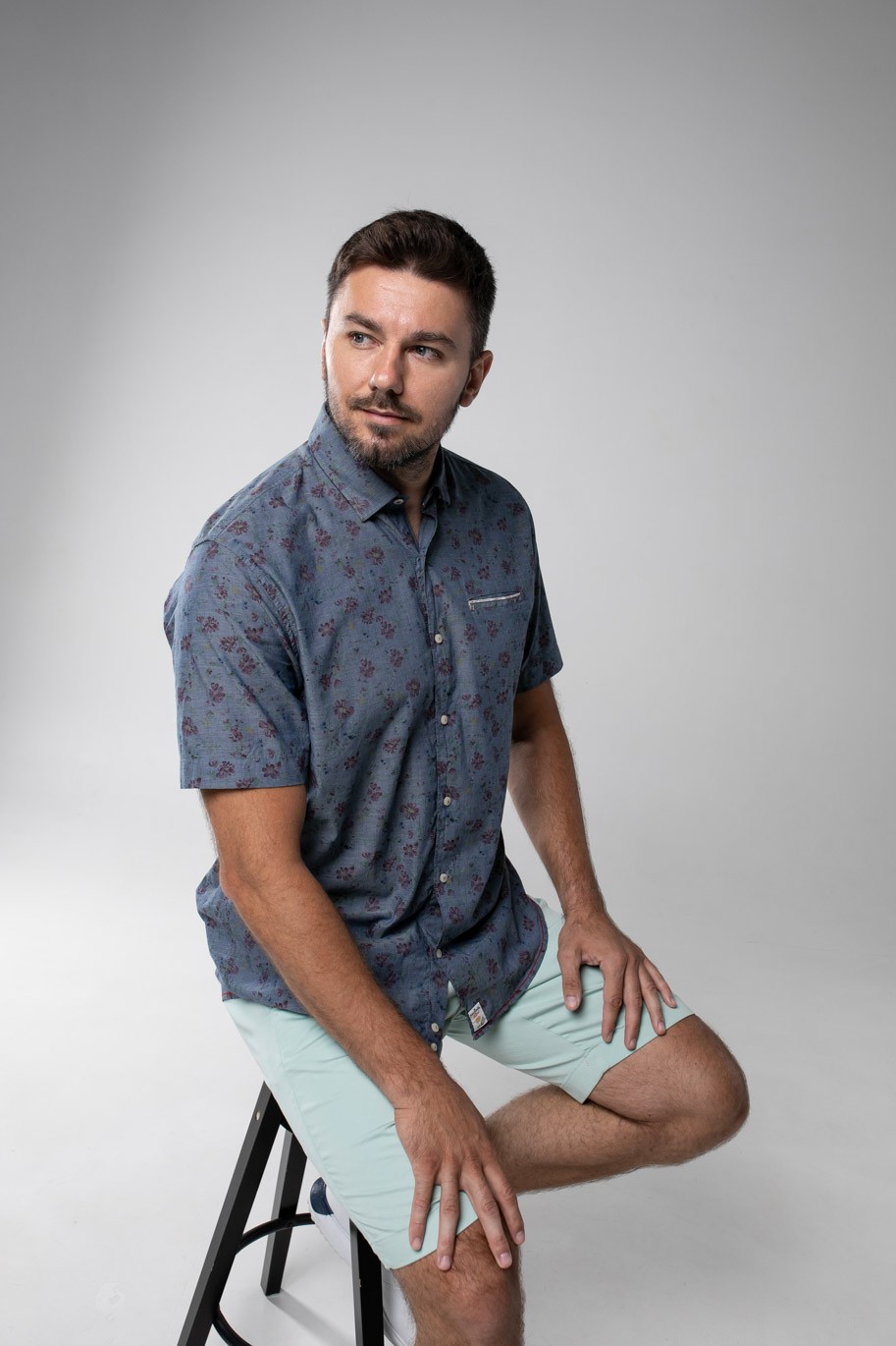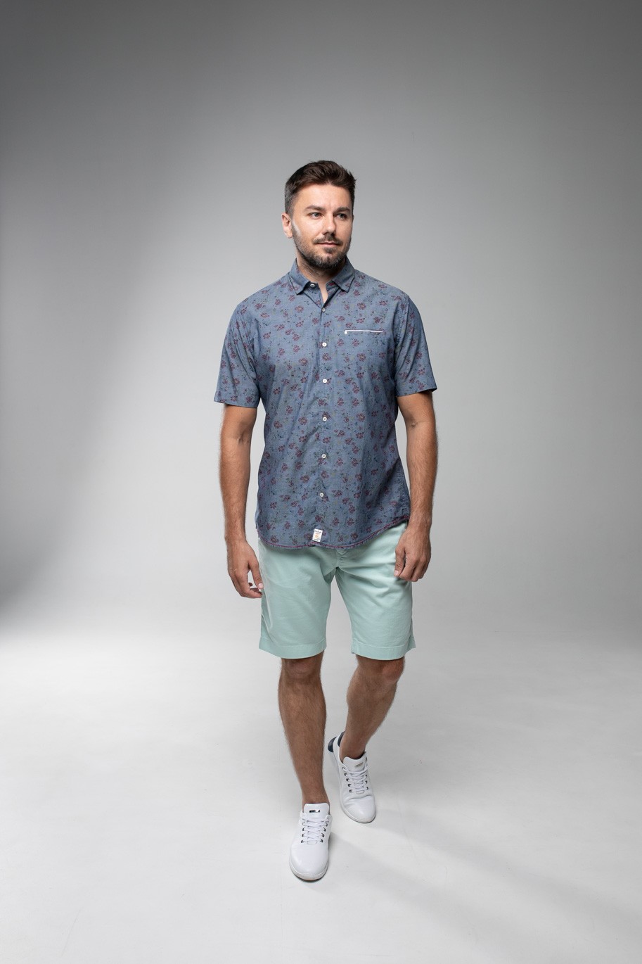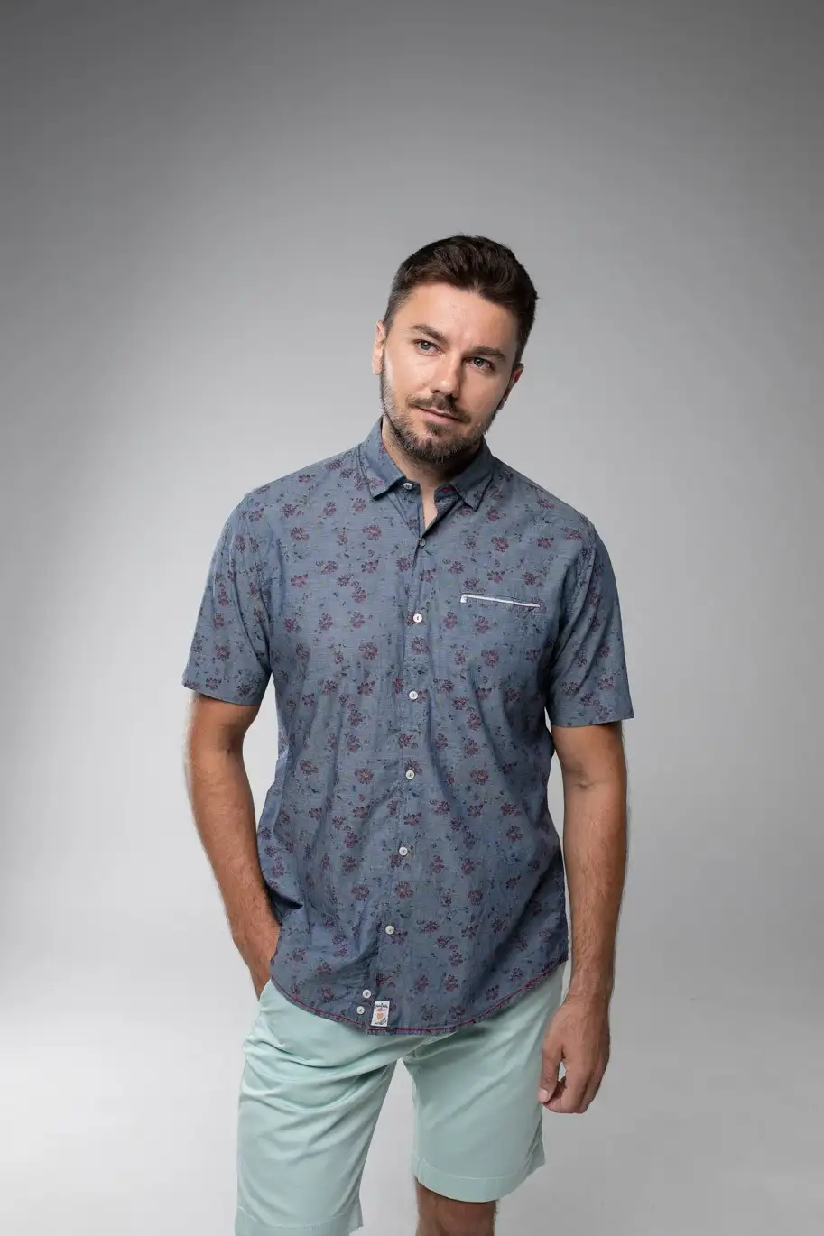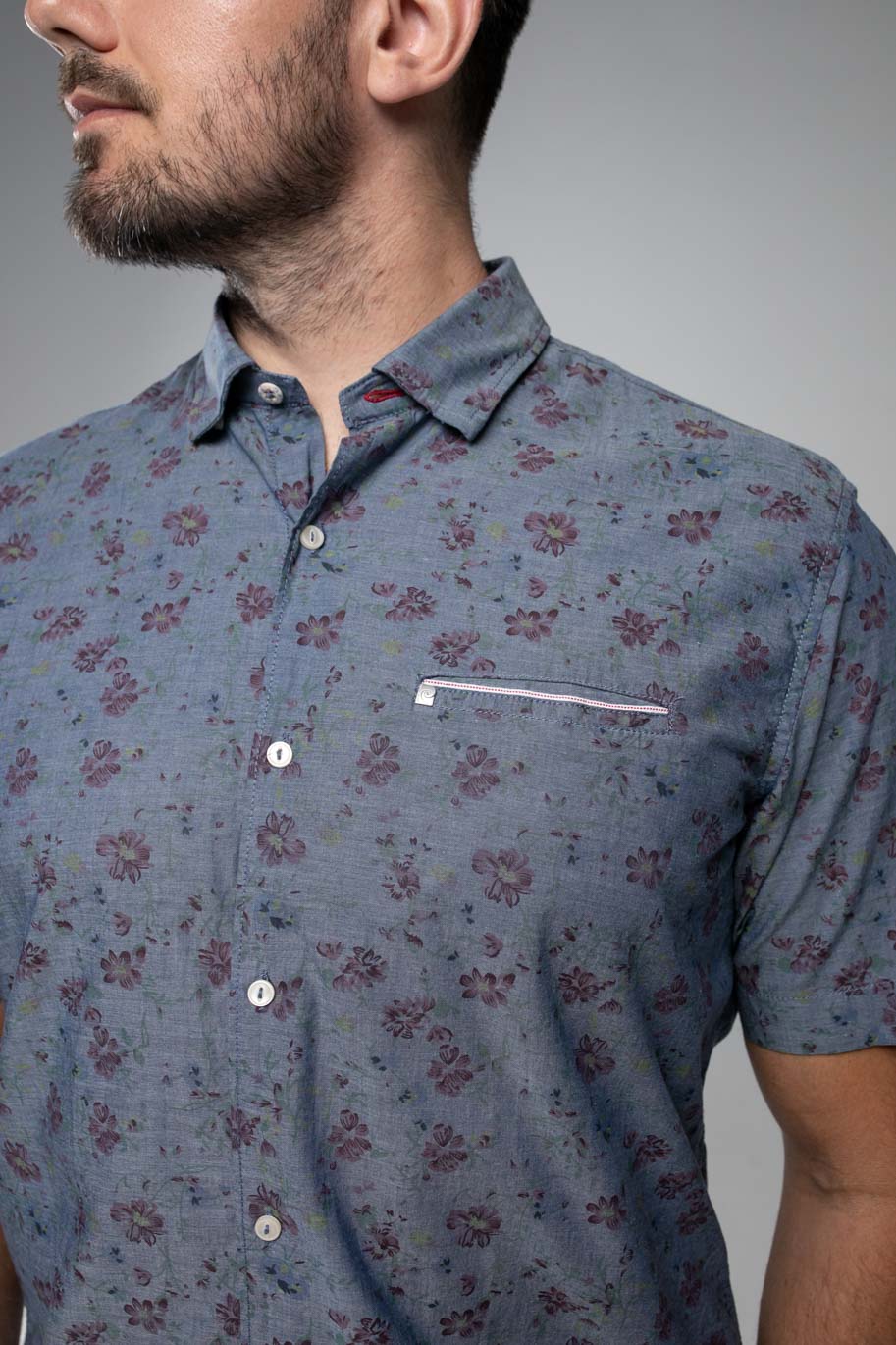 Рубашка Pierre Cardin из коллекции Denim Academy в сером цвете с цветочным принтом